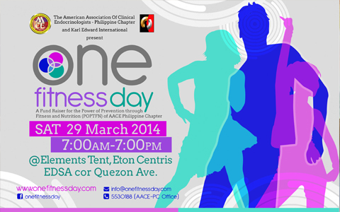 This March 29, 2014 One Fitness Day Party featuring George Lu, Prince Paltu-ob, Regine Tolentino and Madelle Paltu-ob is happening at Elements Tent, Eton Centris EDSA cor Quezon Ave.